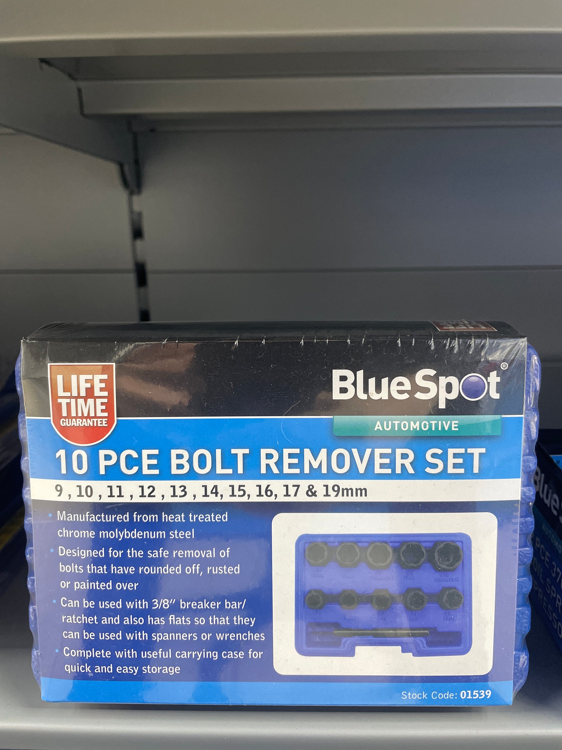 Remove stubborn bolts with ease using the BLUESPOT 10 PCE Bolt Remover Set. With sizes ranging from 9mm to 19mm, this set is perfect for a variety of bolt removal needs. Expertly designed and crafted with precision, this set is a must-have for any tool collection.